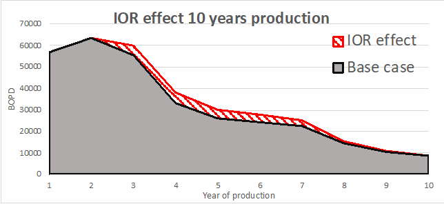 – 10 years projection for the IOR case and extension of production life is anticipated